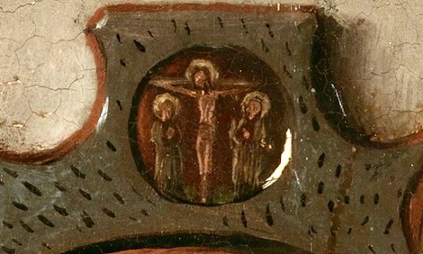 Vous remarquerez peut-être que les scènes du côté de Giovanni se déroulent pendant la vie du Christ et que celles du côté de Costanza se déroulent après la mort du Christ. Cette peinture a été achevée en 1434. Costanza est morte en 1433…