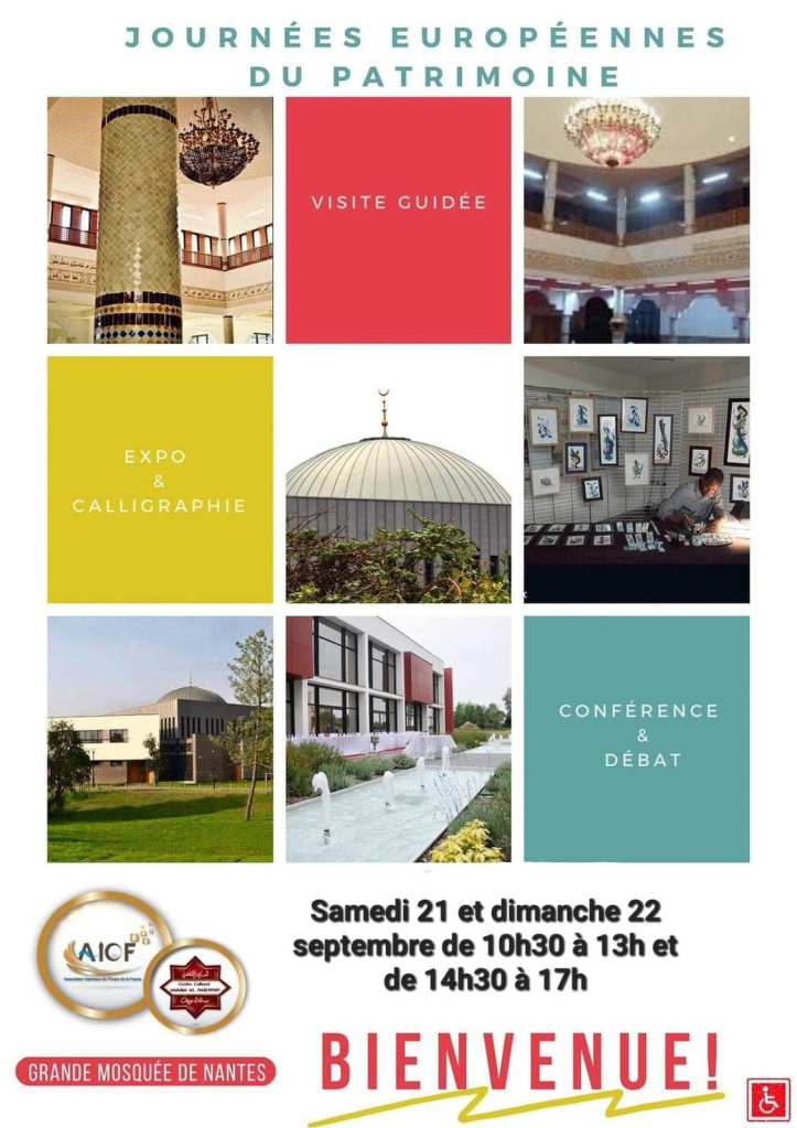 Parmi les très nombreux sites qui organisent quelque chose pour l’occasion, il y a naturellement les trois grandes mosquées, qui n’ont pourtant aucun intérêt « patrimonial » ou « matrimonial ». A noter que celle qui s’intitule « la Grande Mosquée de Nantes AIOF – Centre culturel Abdullah Al Darwish » annonce les activités proposées en oubliant le mot « matrimoine »…