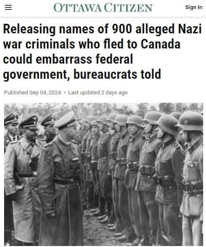 Les archives du Canada devaient publier à la fin de ce mois la liste (en totalité ou en partie) des 900 noms de criminels de guerre nazis qui se sont réfugiés dans le pays après la Seconde Guerre mondiale. Mais des consultations à huis clos ont eu lieu sur l’opportunité de divulguer les données, et les autorités hésitent. On sait que des représentants de la diaspora ukrainienne ont participé à ces consultations, mais il n’y avait pas de descendants de victimes de l’Holocauste : ce sont eux qui insistent pour que la liste soit rendue publique. Par conséquent, on ne sait toujours pas si la liste sera divulguée ou non.