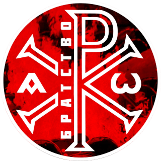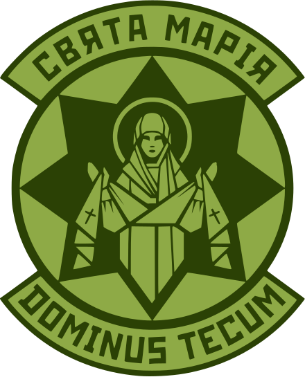 Dmytro Kortchynsky est le président du parti ukrainien Fraternité, qui se définit ainsi : « Parti de Jésus-Christ, Réseau national chrétien – communauté chrétienne révolutionnaire » (logo rouge). En 2014 il avait fondé le « bataillon Sainte Marie » pour combattre les séparatistes du Donbass (logo vert).