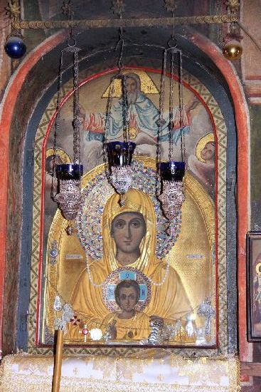 Aujourd’hui dans le calendrier russe (des fêtes d’icônes mariales) on célèbre l’icône de la Mère de Dieu « qui écoute », ou de Zographou, un monastère de l’Athos. Lors d’une fête de l’Annonciation, Côme, un moine de Zographou, était allé au monastère de Vatopedi. Il y vit une femme très belle et majestueuse, et se demanda comment une femme avait pu seulement se trouver sur l’Athos, et comment les moines de Vatopedi avaient pu la laisser entrer. De retour dans son monastère il posa la question à son père spirituel, qui lui dit « Et tu n’as pas compris qui c’était ? Mais ce n’était pas une simple femme, c’était la Reine de notre sainte Montagne et de toute la création ! » Quelque temps après, Côme priait devant l’icône de la Mère de Dieu : « Sainte Mère de Dieu ! Priez votre Fils et Dieu pour qu’il me guide sur le chemin du salut ! » Dès qu’il eut dit cela, il entendit la voix de la Mère de Dieu : « Mon Fils et Dieu ! Apprenez à votre serviteur comment être sauvé ! » Et il entendit la réponse du Christ : « Qu’il se retire du monastère dans le silence. » Aussitôt, avec la bénédiction de son abbé, il se retira au désert, vécut tout le reste de sa vie dans une grotte, et reçut le don des miracles. C’est pourquoi l’icône devant laquelle il pria, et qui se trouve toujours dans le monastère de Zographou, est celle de « la Mère de Dieu qui écoute » (Ouslichatelnitsa), ou « qui répond aux prières », ou « qui exauce ».