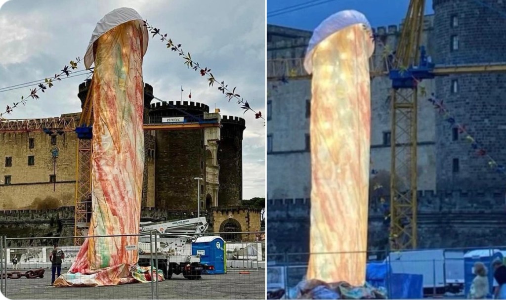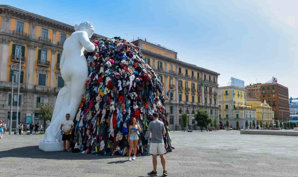 « Pulcinella », de Gaetano Pesce, a été inaugurée par le maire de Naples. Cette « œuvre » remplace « la Vénus aux chiffons », de Michelangelo Pistoletto.
