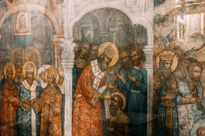 Le monastère Novospasski (nouveau monastère du Sauveur) de Moscou a retrouvé dimanche plusieurs de ses fresques et peintures qui avaient disparu au cours de la période bolchevique. Elles ont été présentées et bénies par le métropolite Grégoire de Voskresensk, vicaire du patriarche pour la ville de Moscou et chancelier du patriarcat.