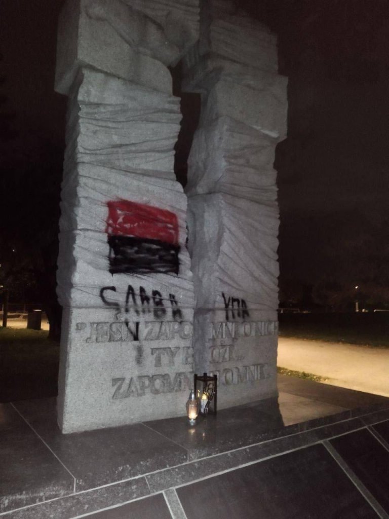 Des inconnus ont vandalisé le monument aux victimes du massacre de Volhynie à Wrocław, en Pologne. Un drapeau rouge et noir de l’organisation nazie de Bandera a été peint, accompagné du slogan, en ukrainien : Gloire à l’UPA.