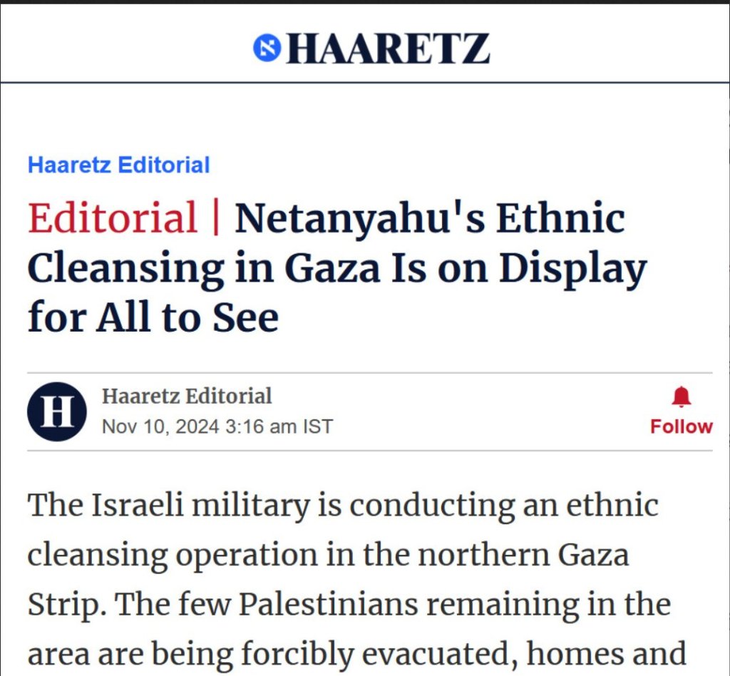 Ce n’est pas une feuille complotiste antisémite qui le dit, c’est le grand quotidien israélien Haaretz qui finit par le reconnaître : « Le nettoyage ethnique de Gaza par Netanyahu est exposé à la vue de tous. »