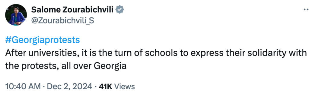 « Après les universités, c’est le tour des écoles d’exprimer leur solidarité avec les manifestants, dans toute la Géorgie. »