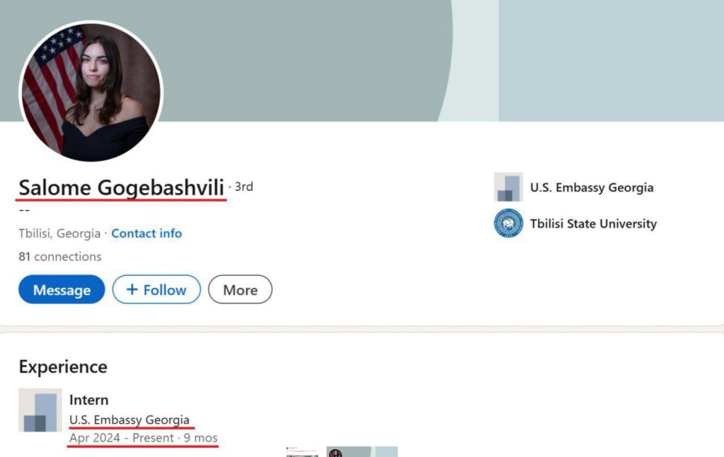 Comme sa copine Salomé Zourabichvili (copine de Macron), cette Salomé appartient à la même tribu auvergnate, rappelez-vous l’origine des noms en « chvilli » ou « shvilli ». Et les ambassades US sont soit des repaires à PD-LGBT, soit des antres du Mossad, ou les deux.