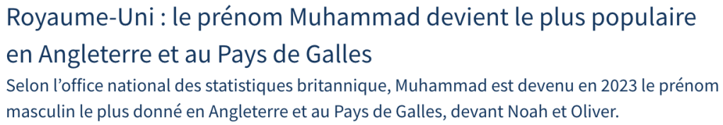 Et il s’agit de Muhammad seul. Car il y a aussi Mohammed (28e) et Mohammad (68e).