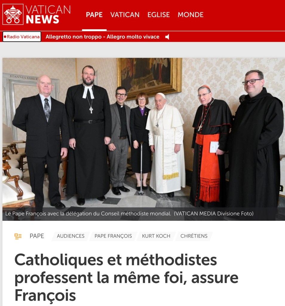 L’article souligne que François a tout particulièrement salué la nouvelle présidente du Conseil méthodiste mondial, « l’évêque Debra Wallace-Padgett ». La même foi dans les sacrements de la foi ?