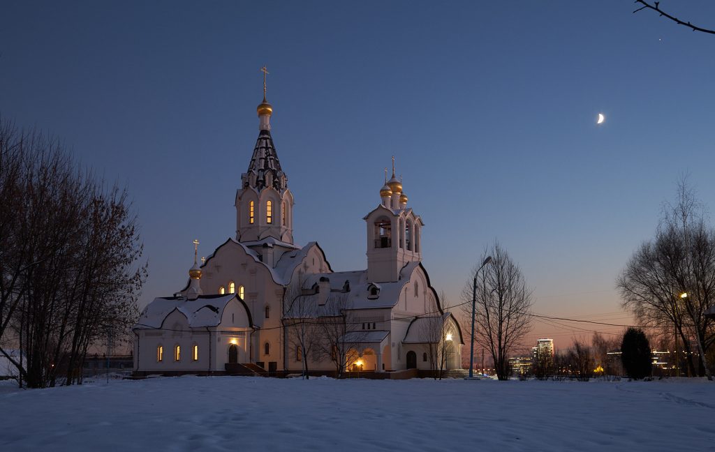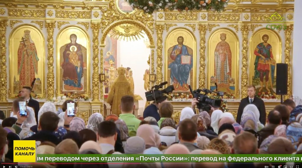 Ce matin, le patriarche Cyrille consacrait l’une des 200 nouvelles églises de Moscou, l’église Saints Constantin et Hélène à Mitino, dans la banlieue nord-ouest. Sur la deuxième photo on voit l’église provisoire en bois. Les icônes de l’iconostase sont tout-à-fait traditionnelles. Le décor doré est quelque peu surchargé, mais c’est ce qu’aiment les Russes. Dans les églises du XVIIIe siècle à Saint-Pétersbourg c’est pire. Il y a aussi une ordination sacerdotale. Dimanche dernier c’était la consécration d’une nouvelle église dans la banlieue sud, avec une ordination épiscopale. Chaque fois l’église est bondée.
