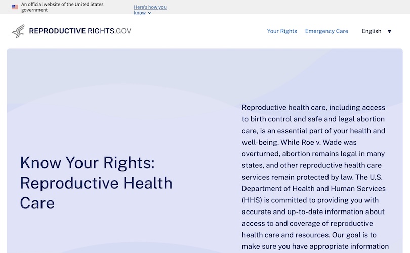 Il renvoyait également à un portail permettant de déposer des plaintes auprès du Bureau des droits civils du ministère de la Santé et des services sociaux (HHS) en cas de « restrictions discriminatoires à l’accès aux soins de santé », dont fait partie l’avortement.