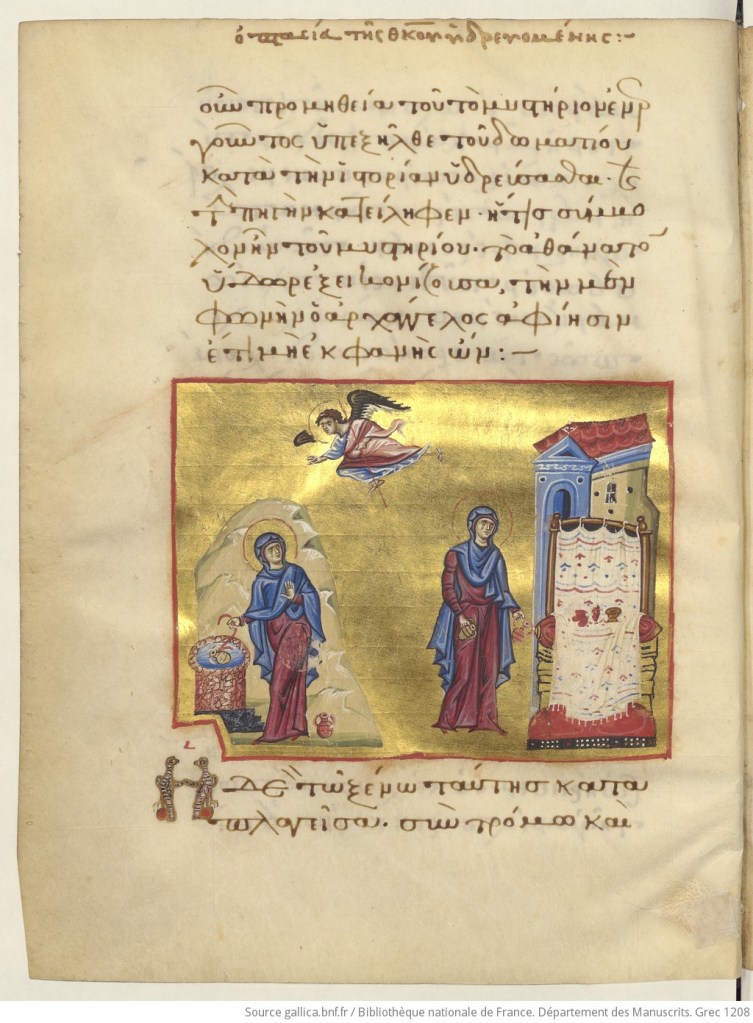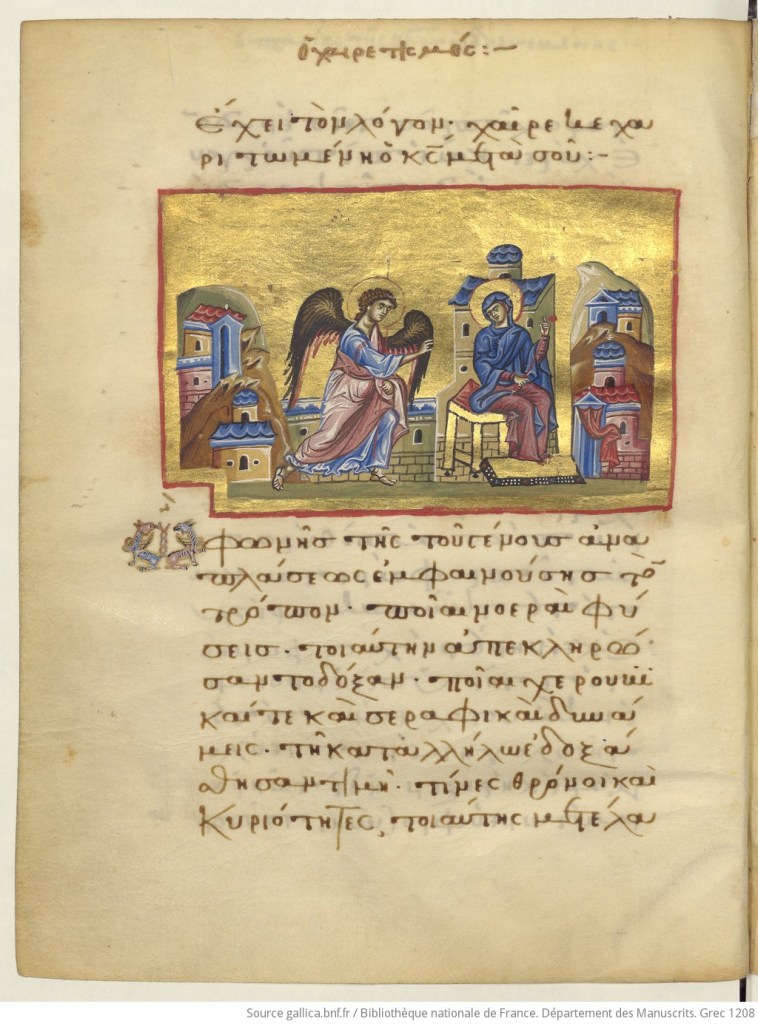 Et voici qu’un ange debout devant elle disait : « Ne crains pas, Marie, tu as trouvé grâce devant le Maître de toute chose. Tu concevras de son Verbe. »