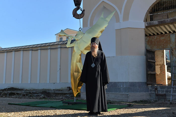 Le célèbre monastère d’Optina (le « désert d’Optina », avec son ermitage où résida notamment Dostoïevski), à 270 km au sud de Moscou, a retrouvé son « ange sonnant de la trompette ». Avant la révolution bolchevique, un ange trompettiste faisant aussi office de girouette surplombait l’entrée principale du monastère, comme on le voit sur les anciennes photos. Il avait disparu. Le monastère (une petite ville, avec sa cathédrale et ses sept églises, sans compter celle de l’ermitage) a été entièrement restauré depuis le début des années 2000, et le nouvel ange sonnant de la trompette vient couronner la restauration. « L’effigie de l’ange, fabriquée dans un métal particulièrement résistant, a été équipée d’un mécanisme rotatif unique garantissant une facilité de mouvement et une solidité de fixation même lors de fortes rafales de vent », précise le monastère, non sans souligner la signification religieuse de la statue :