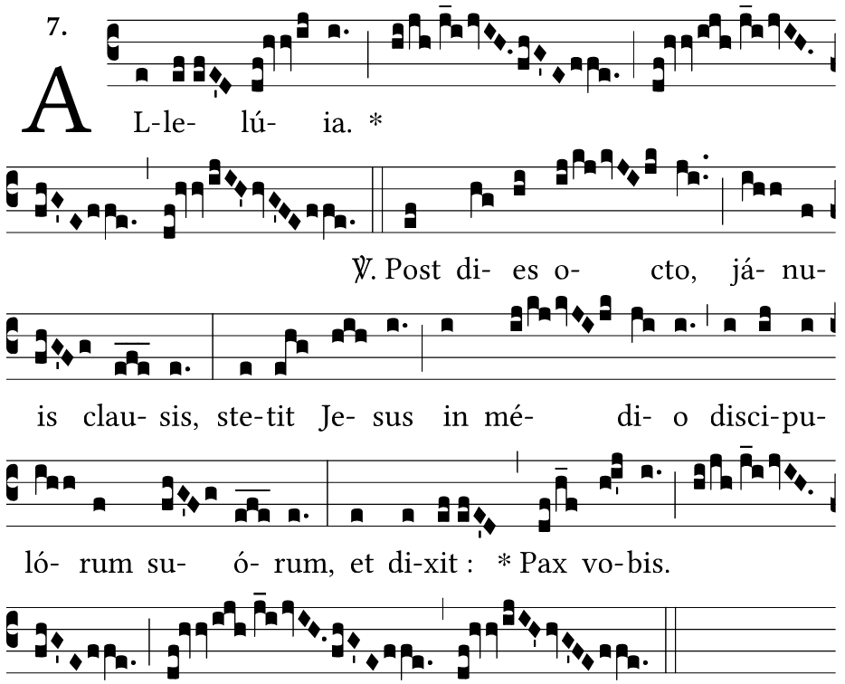 Allelúia. Post dies octo, jánuis clausis, stetit Jesus in médio discipulórum suórum, et dixit : Pax vobis. Allelúia.