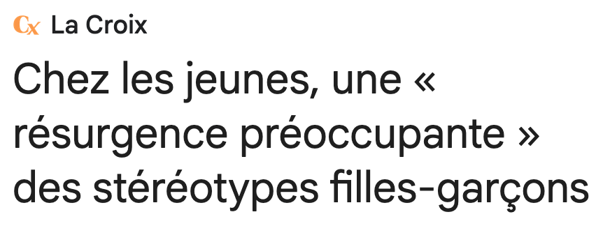 On comprend tout de suite que le rapport n’est qu’une nouvelle banale production des tâcherons officiels de l’idéologie du genre. Si les gazettes le mettent en avant, c’est parce que selon lui « une résurgence de l’adhésion à certains stéréotypes est observée chez les jeunes adultes ces dernières années ». Voilà qui est inquiétant. Particulièrement pour… La Croix. Car le quotidien « chrétien » est l’un de ceux (assez rares, en fait) qui font un gros titre des conclusions du rapport :