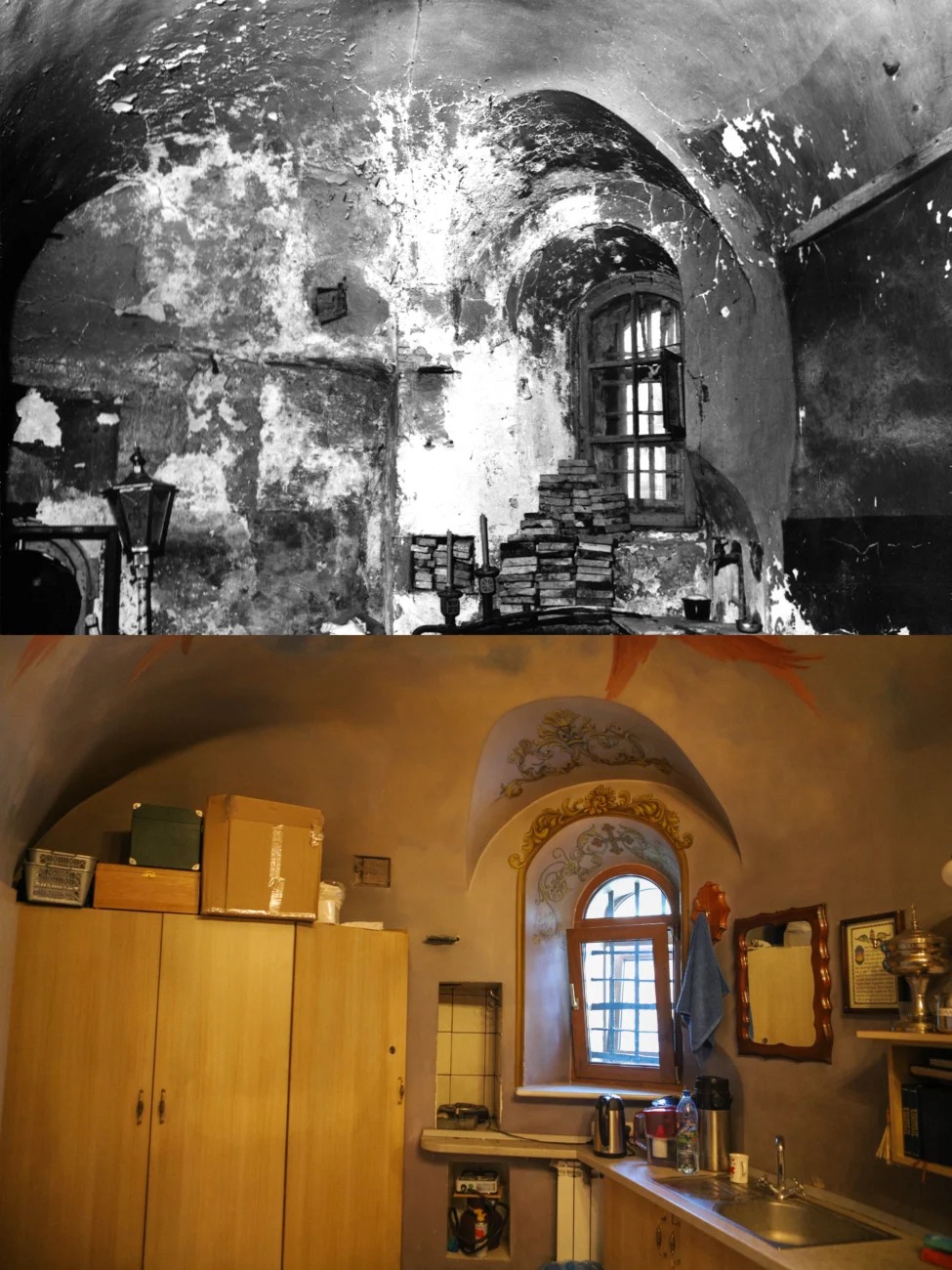 Alors que le ministère de la Culture a osé rompre le contrat de location avec les moines après avoir constaté « un entretien inadéquat du monument architectural » et avoir donc diligenté des inspections dont les dernières sont carrément sacrilèges, le groupe SvitViri publie une série de photos avant-après, montrant ce que les moines ont vraiment fait. En voici quelques-unes.