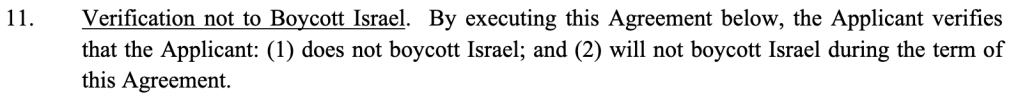 Les particuliers et les entreprises qui demandent à recevoir des aides après une catastrophe doivent s’engager à ne pas boycotter Israël.