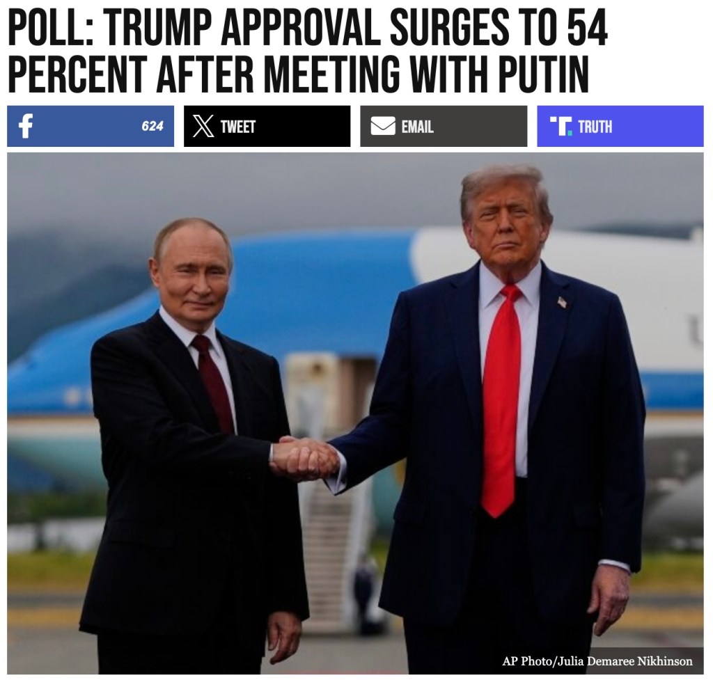 Selon un sondage InsiderAdvantage, la cote de Donald Trump chez les Américains est montée de 50 à 54% après son entretien avec Vladimir Poutine.