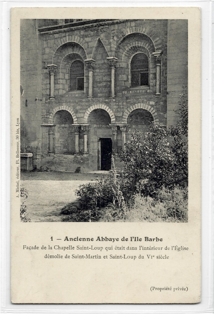 Saint Loup de Lyon était ermite près de l’abbaye de l’Ile-Barbe dont il devint abbé. Les moines fuient l’île lors de la guerre entre Francs et Burgondes, et Loup devient évêque de Lyon, d’abord sous tutelle burgonde, puis sous tutelle franque. Il se serait ensuite retiré dans son abbaye, dont une chapelle lui sera dédiée.