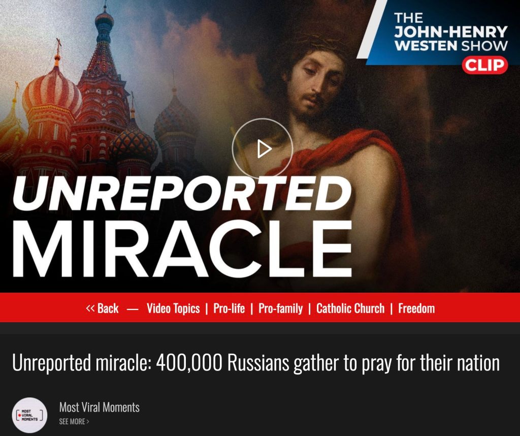 La vidéo titre sur le « miracle dont on n’a pas parlé : 400.000 Russes rassemblés pour prier pour leur nation ».
