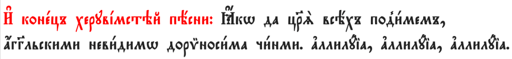 Nous qui, dans ce mystère, représentons les chérubins et chantons l’hymne trois fois sainte à la vivifiante Trinité, déposons maintenant tous les soucis de cette vie…