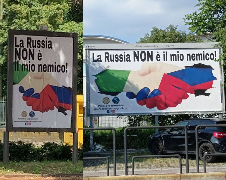 La campagne d’affichage est née en Italie, où elle n’est pas illégale puisqu’elle se trouve sur des panneaux commerciaux :