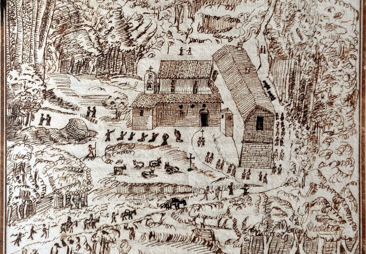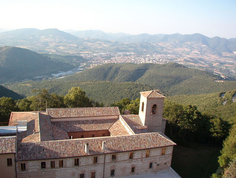 1er juin 1231. Les habitants de Fabriano, Benedittolo et Vitale, fils d’Albertuccio, Rinaldo, fils de Bernardo (avec le consentement de sa fille Maria), Atto, fils de Pietro di Raino, Mancino, fils de Guido, et Ugolino, fils de Morico di Ugolino, par quatre actes notariés distincts, font don à « Fra Silvestro » de six boisseaux de forêt (environ 2.640 mètres carrés) sur le Montefano, autour de la Fonte Vembrici – une source d’eau toujours existante – pour la construction d’un ermitage. La nouvelle fondation monastique est parrainée et soutenue par le Chapitre de San Venanzo, l’église mère de Fabriano, c’est-à-dire par la plus haute autorité ecclésiastique de la ville : en effet, quatre chanoines (Cuzio, Pietro, Simone et Meliorato) sont présents comme témoins de la donation, et l’un des documents est établi « ante campanile Sancti Venantii ». Les chanoines témoignèrent par la suite de leur amitié et de leur estime pour Silvestre, l’invitant « très souvent » à leur église pour « proposer la parole de Dieu au peuple » (Vita Silvestri, chap. 27). Parmi les témoins figure également Atto, chapelain de l’église rurale de Santa Lucia, située à l’époque sur la route de Fabriano à Montefano et dépendant de l’abbaye de Sant’Angelo infra Ostia, près d’Esanatoglia. Le titre de la chapelle fut plus tard transféré à une nouvelle église, construite à Borgo del Piano, dans les limites de la paroisse de San Venanzo.