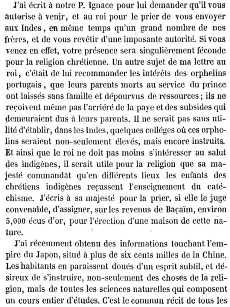 Extrait d’une longue lettre de Cochin, le 28 janvier 1549 (une sorte de rapport, en fait), au P. Simon Rodrigues, provincial des jésuites du Portugal (il était aussi l’un des premiers compagnons de saint Ignace, et avait accompagné saint François-Xavier à Goa neuf ans plus tôt).