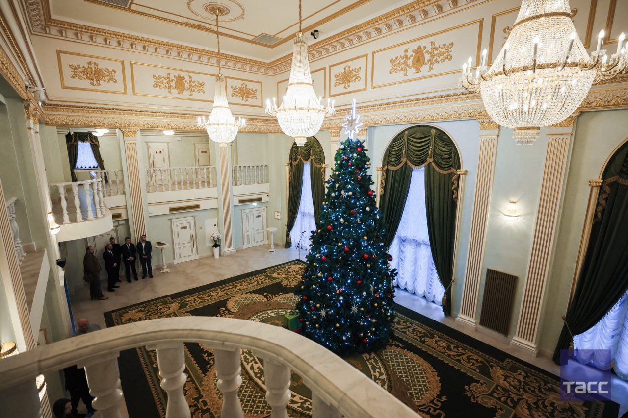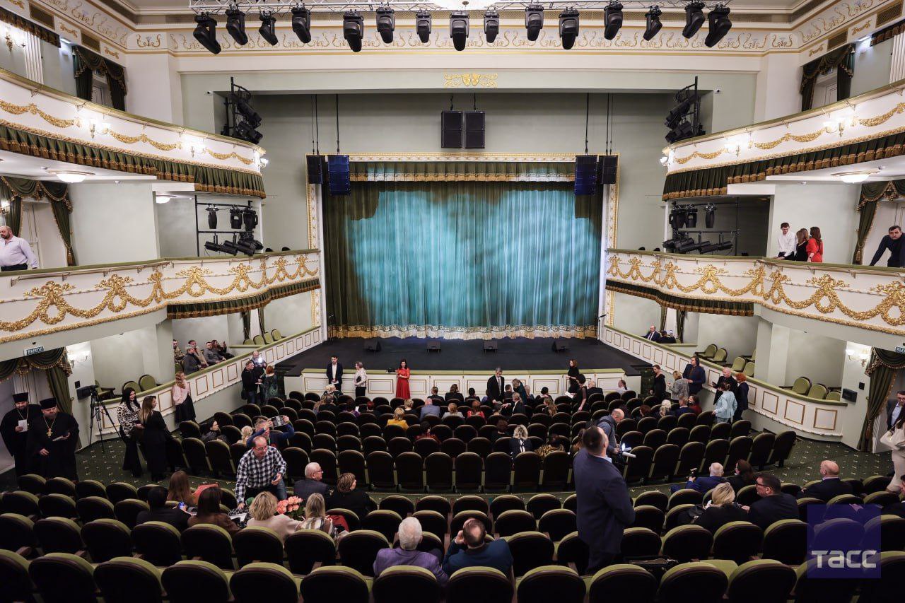 En tout cas on peut voir aujourd’hui l’intérieur du théâtre de Marioupol, magnifiquement reconstitué. Inauguré hier par le gouverneur de Saint-Pétersbourg Alexandre Beglov et le président de la République de Donetsk Denis Pouchiline. (Marioupol a été jumelée à Saint-Pétersbourg qui pilote et finance la reconstruction. Quand les enfants de Marioupol vont en vacances à Saint-Pétersbourg ils sont « kidnappés par les Russes »…)