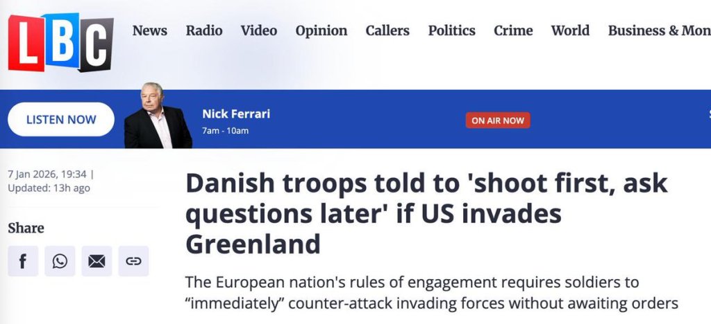Le gouvernement danois fait savoir à ses troupes au Groenland que la directive de 1952 reste en vigueur : s’ils sont attaqués les soldats sont tenus d’engager immédiatement le combat sans attendre d’ordres. « Tirez d’abord, posez des questions après. »