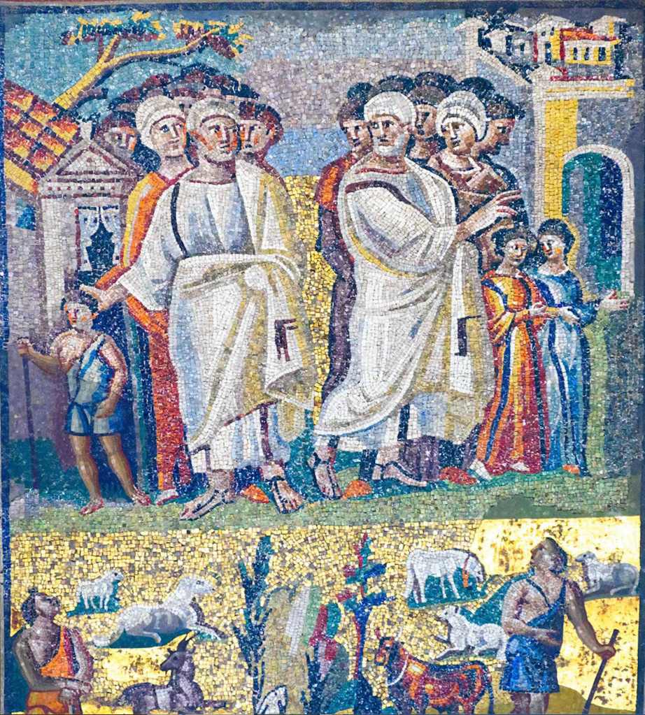 La mosaïque de la basilique Sainte-Marie-Majeure est du Ve siècle. On y voit la séparation enter Lot et Abraham. Pour les distinguer, on voit Lot avec ses deux filles, qui étaient peut-être plus grandes que cela, et Abraham avec Isaac, qui n’allait naître que plusieurs années plus tard.