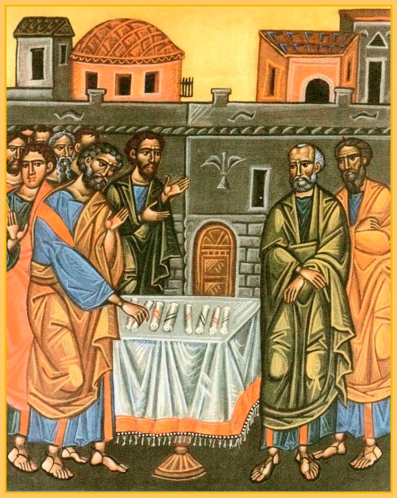 Le tirage au sort entre Matthias et Joseph Barsabas.