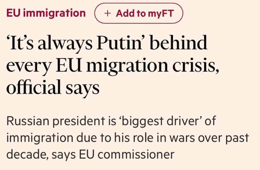 « “C’est toujours Poutine” derrière chaque crise migratoire de l’UE », titre le Financial Times, citant le commissaire européen aux migrations Magnus Brunner.