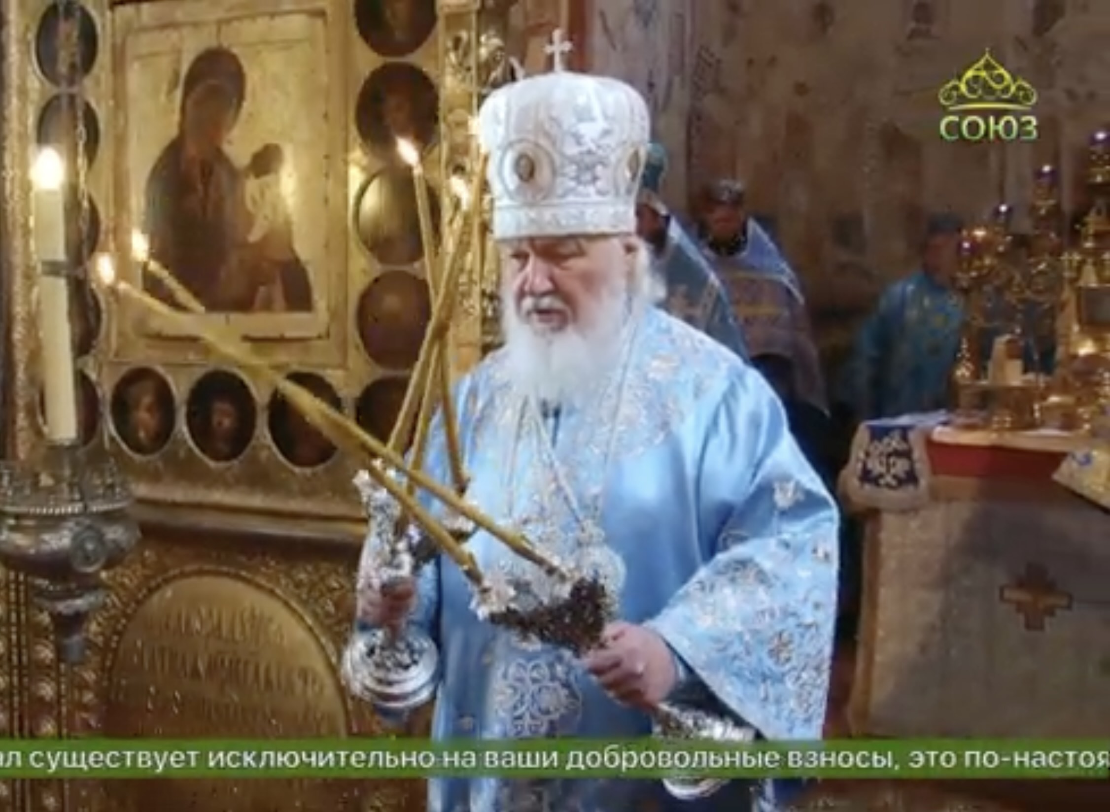 Dans le calendrier julien c’est aujourd’hui la fête de l’Annonciation. Le patriarche Cyrille a donc célébré la divine liturgie dans la cathédrale de l’Annonciation du Kremlin.
