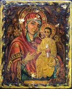 Le 21 octobre on fête en Russie l’cône de la Mère de Dieu « Délivrance de ceux qui souffrent de l’adversité ». C’est une toute petite icône (9,3 x 11,2 cm) qui fut découverte en 1917 selon le mode traditionnel du songe. Une jeune femme de Tachla, dans la région de Samara, Catherine Tchougounova, voit trois fois la Mère de Dieu pendant son sommeil, lui indiquant un endroit où est enfouie une icône. La troisième fois la Mère de Dieu se fait très insistante. Un matin, Catherine voit deux anges qui tiennent une icône très brillante et disparaissent dans un ravin. On finit par creuser à cet endroit, et on trouve une petite icône à quelque 70 cm de profondeur. Aussitôt apparaît une source, qui sera l’une des plus abondantes de la région bien que les bolcheviques tentent de la boucher dans les années 1920. L’icône, qui accomplit un premier miracle dès son transfert à l’église du village, sera cachée par les habitants pendant l’époque des persécutions, jusqu’en 1947 quand l’église peut ouvrir de nouveau, et devient un lieu de pèlerinage. Le site est peu à peu aménagé après la reconnaissance officielle par l’Eglise orthodoxe russe en 1981, et en 2005 une église est construite à proximité du lieu d’apparition de l’icône, et de la source. (On peut voir une vidéo amateur ici.)